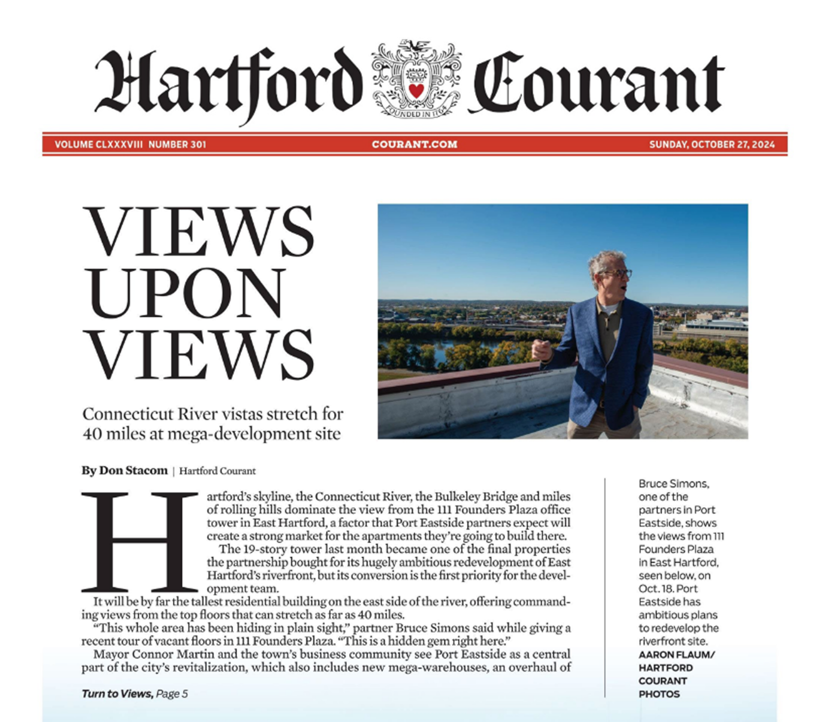 Rising above the Connecticut River, Port Eastside creating a new vision for a waterfront destination where modern residences, dynamic retail and entertainment spaces, and an elevated greenway come together, while establishing a seamless pedestrian connection to Hartford's cultural district. Through thoughtful design and planning, Port Eastside will become New England's next great waterfront community, creating stronger connections between both sides of the river while offering unprecedented access to the waterfront.